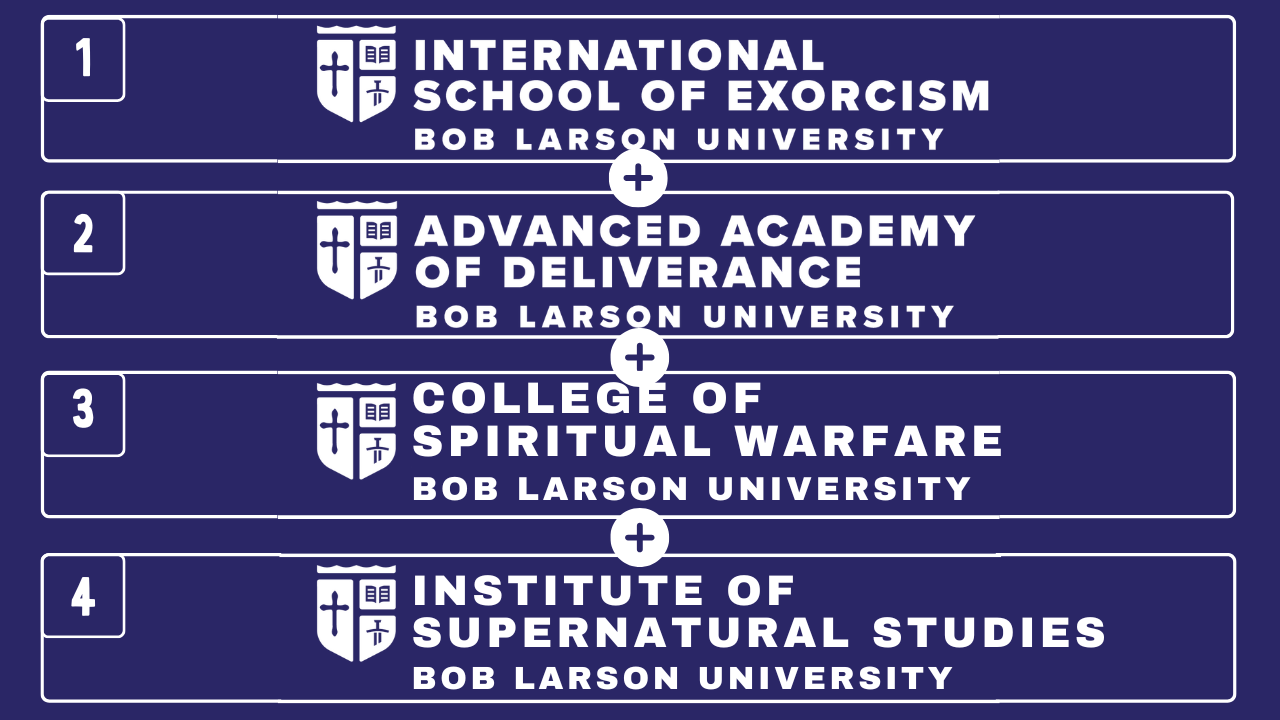The fundamentals of deliverance and exorcism; thirty courses teaching church history, biblical exorcism, curse breaking, Catholic exorcism, inner healing, dissociative disorder, angelology, and how to perform an exorcism.